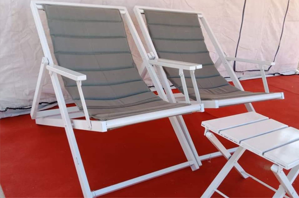 - The private open lobby of 14x7 sq.ft in front of every tent with two relaxing handicraft chairs.