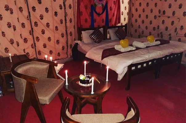 Night Stay in Deluxe Swish Cottage Non AC (Swish Cottage are Attached late Bath wit western Toilet & Cold/Hot water in Tent)